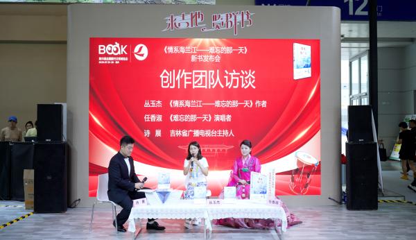 活动中,在主创团队访谈环节,作者丛玉杰、朝鲜族歌唱家任香淑分别就图书《情系海兰江——难忘的那一天》、歌曲《难忘的那一天》的创作过程、主要内容、艺术特色、时代价值等,展开深入交流。