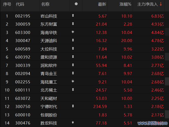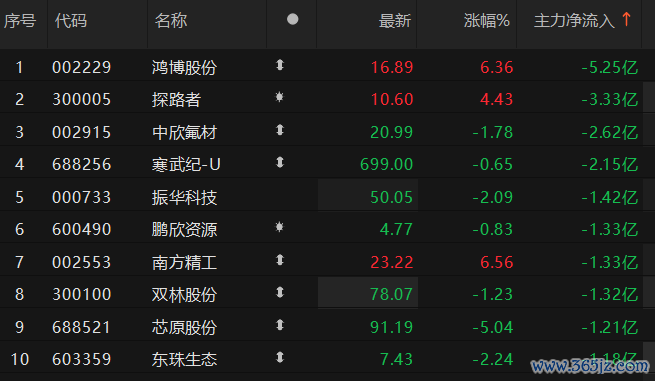 上证报中国证券网讯 5月6日11时20分,6只A股的主力资金净流入超3亿元。其中,岩山科技净流入近7亿元,位居首位。2只A股的主力资金净流出超3亿元。其中,鸿博股份净流出超5亿元。